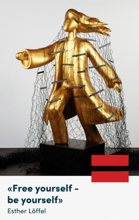 Von Regula Stämpfli – Vom 8. bis zum 22. März 2023 findet im Hauptbahnhof eine reale Ausstellung zu einem Hashtag statt: #StrongerWhenEqual. Der mächtigste Wirtschaftsverband für Gleichstellung in der Schweiz sponsort während zwei Wochen eine kurze, spannende und provozierende Ausstellung im Hauptbahnhof Zürich. Ausgang war eine zwei Meter hohe Skulptur namens „Advancine“, die entlang dem Thema Equality transformiert und gestaltet werden sollen. Von 100 Werkideen hat eine unabhängige Jury – weshalb war ich eigentlich nicht eingeladen? – dreissig Projekte selektiert. Die „Avancine“ als Grundfigur ist etwas gewöhnungsbedürftig, doch die Idee und deren Umsetzung durch hervorragende Künstlerinnen ist grossartig. Genial ist die Kombi virtuelle und sur place Ausstellung. Unter den Objekten fallen auf: