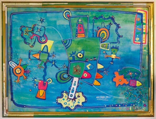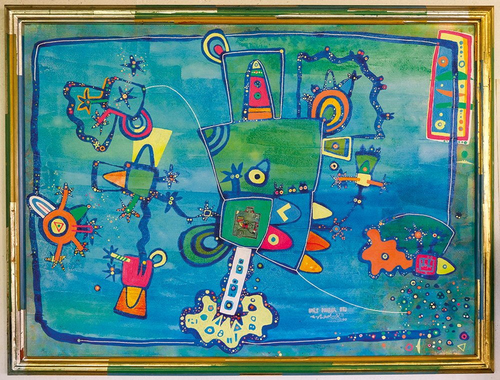 Man muss nicht den Anspruch haben, einen Künstler oder eine Künstlerin auf Anhieb zu verstehen. Die Bilder von Urs Huber Uri sind in seiner Sprache Symbolbriefe. Er sagt: «Kunst besteht in der Erinnerung an die Götter.» Für Aussenstehende braucht es Zeit, sich in dieses Universum einzuarbeiten. So sind seine Bilder mehr zum Lesen und nicht nur zum Betrachten gedacht – wobei mir persönlich das Betrachten wesentlich einfacher fällt. Aber ich habe auch keine Ahnung, wie die Hopi-Sprache aussieht, klingt, erinnere mich aber an die Maya-Symbole, mit denen ich genauso wenig anfangen kann. Faszinierend ist es aber allemal, und ich stelle mir die einfache Frage: Wie wichtig sind Theorien oder Wissen, wenn mich das Bild bewegt?