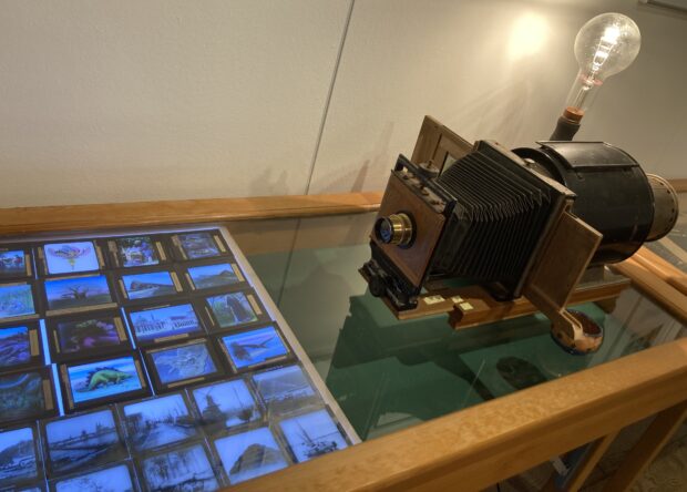 Der Diaprojektor aus der Schule von Fritz Bohnenblust zeigt in der Ausstellung, dass der Lehrer auch Kulturförderer war und ein beson­de­res Flair für die Fotografie besass. Foto: Karl Johannes Rechsteiner