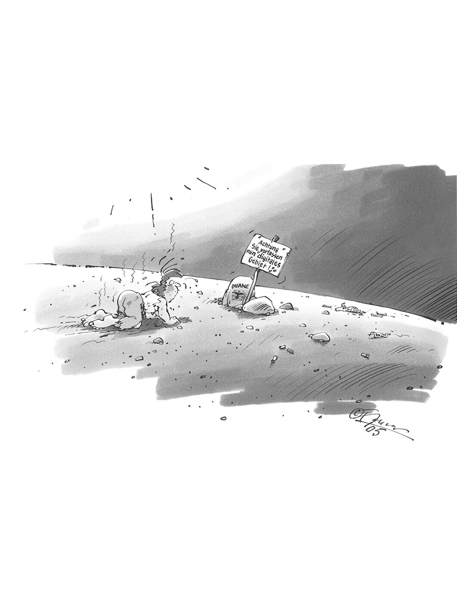 Nun gut, lassen wir das. Der Fall kam früh genug und er war tief. Nicht nur jener der Aktien-Kurse, auch wir trafen hart auf, so dass die Vision arg erschüttert wurde. Seither trösten wir uns mit SMS-Kursen, decken uns ein mit Breitband-Anschlüssen, damit wir schneller gratis Musik aus dem Netz herunterladen können, träumen vom Alles-in-Einem-Gerät. Derweil hat sich auch die Vision vom Sturz erholt. Sie hat sich aufgerappelt und beflügelt nun die politische Agenda der UNO.