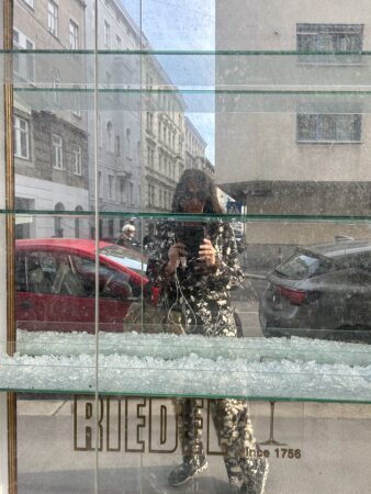 Louise Deininger stellte im Aux Gazelles in Wien aus – die Treppe zur Maria Hilferstrasse wurde mit Tüchern kuratiert, umwerfend schön, das Wetter spielte genial mit. Louise ist nicht nur eine grosse Künstlerin, sondern Aktivistin mit eigener Charity-Organisation Gyko, die alle unterstützen sollten, weil sie jungen Menschen in Norduganda mit einer eigenen Schule, Ausbildung und Zukunft ermöglicht. Deiningers farbstarke Gemälde aus Acryl, Elefantendung und Kaurimuscheln und eben dem «Wrap» gehört zu den Menschen, die Geschichte schreiben werden; mit ihrer Kunst und ihrer Persönlichkeit. Könnten wir täglich von KünstlerInnen lesen, hören und sehen, wie sie die Welt wahrnehmen, gestalten möchten und uns Menschen verbinden, ganz ehrlich? Wir wären eine glücklichere Welt, jenseits des traditionellen Kulturbetriebs, der seit den 1960er Jahren sich als ANTI statt als Pro-Demokratie definiert.