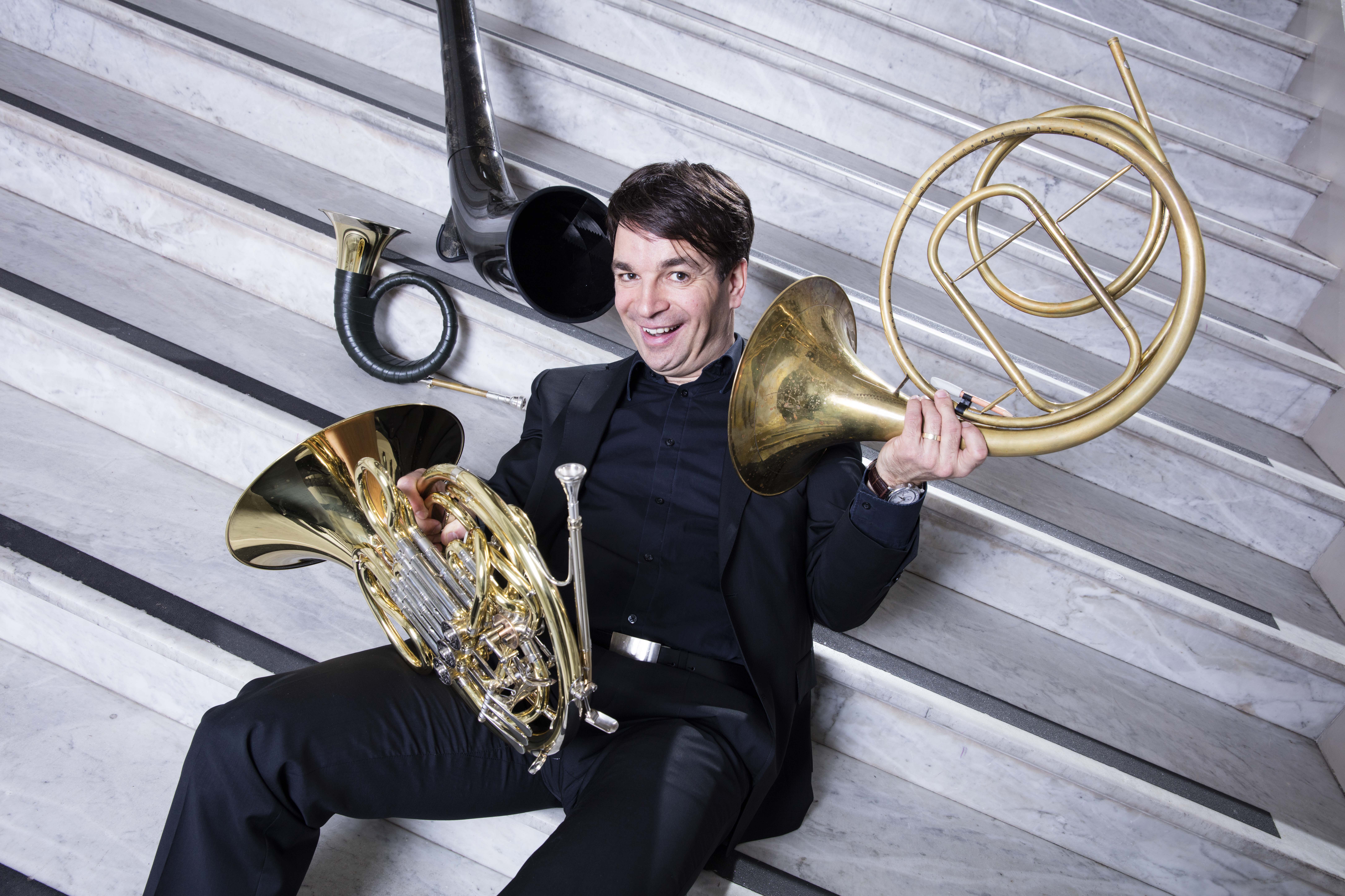 (unten) Christian Holenstein spielt Posthorn, Horn, Alphorn und Naturhorn