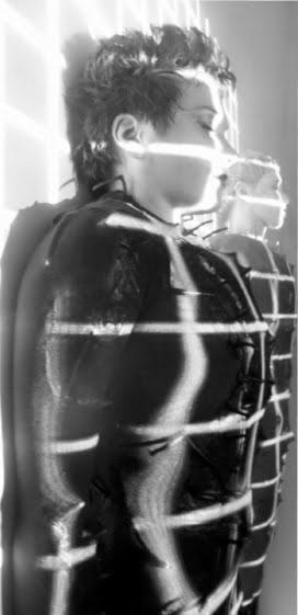 Interaktiver Tanz Beim MidiDancer wer­den acht Sensoren an die Hauptgelenke gehef­tet, sie mes­sen die Winkel. Über Kabel sind sie mit einem win­zi­gen Gehäuse auf dem Tänzerrücken ver­bun­den, wel­ches der vol­len Gelenkstreckung die Zahl 0, der vol­len Beugung 100 bei­misst. Über Radiowellen sen­det es dreis­sig­mal die Sekunde einem Empfänger abseits der Bühne die Information. Dieser wan­delt sie in MIDI-Signale um und spielt sie einem MIDI-fähi­gen Macintosh-Computer zu. Dort kann man die Signale bear­bei­ten und in einem MIDI-Datenformat spei­chern. Der Choreograf kann fest­le­gen, mit wel­chen wei­te­ren Musik‑, Licht- oder Video-Dateien die Signale ver­knüpft wer­den sol­len und auf wel­che Weise. Ob spit­ze Ellenbogen und Knie die Bühne mit grel­lem Licht und schril­len Tönen über­flu­ten, kann dann live erlebt wer­den. Auf einer Tagung im Frühjahr 2002 in Girona gestand Mark Coniglio: «Das Problem mit dem MidiDancer ist fol­gen­des: Um es wirk­lich aus­zu­spie­len und dem Publikum das Spielen der Tänzer erfahr­bar zu machen, muss sich der Tänzer sich wie ein Musiker bewe­gen.» Wenn der Tänzer nicht bewusst kom­po­niert, blit­zen schar­fes Licht und spit­zer Ton auf wie ver­ein­zel­te Disco-Effekte. Mark hat als Nicht-Tänzer lan­ge gebraucht, wie er beschei­den zugibt, um fest­zu­stel­len, dass beim Betrachten von Tanz nicht der Winkel das Mass der Dinge ist. Der Tänzer soll also nun nicht mehr Farben durch den Raum schicken und ihn mit Tönen ver­se­hen wie eine Fernbedienung aus Fleisch und Blut. Vielmehr soll sich die Software nach tanz­ty­pi­schen Eigenschaften rich­ten. «Was wir Zuschauer am Tanz wahr­haft sehen, ist Energie.» Und des­halb soll sei­ne Software nun Beschleunigungen erfas­sen. Pirouetten, plötz­li­ches Stoppen und Erzittern sol­len nun rele­vant wer­den. Für was noch mal? Für die pas­sen­de Klang- und Lichtausstattung.
